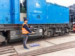 Anschließend wird über die Drehscheibe die Fahrt zum Zug dokumentiert.